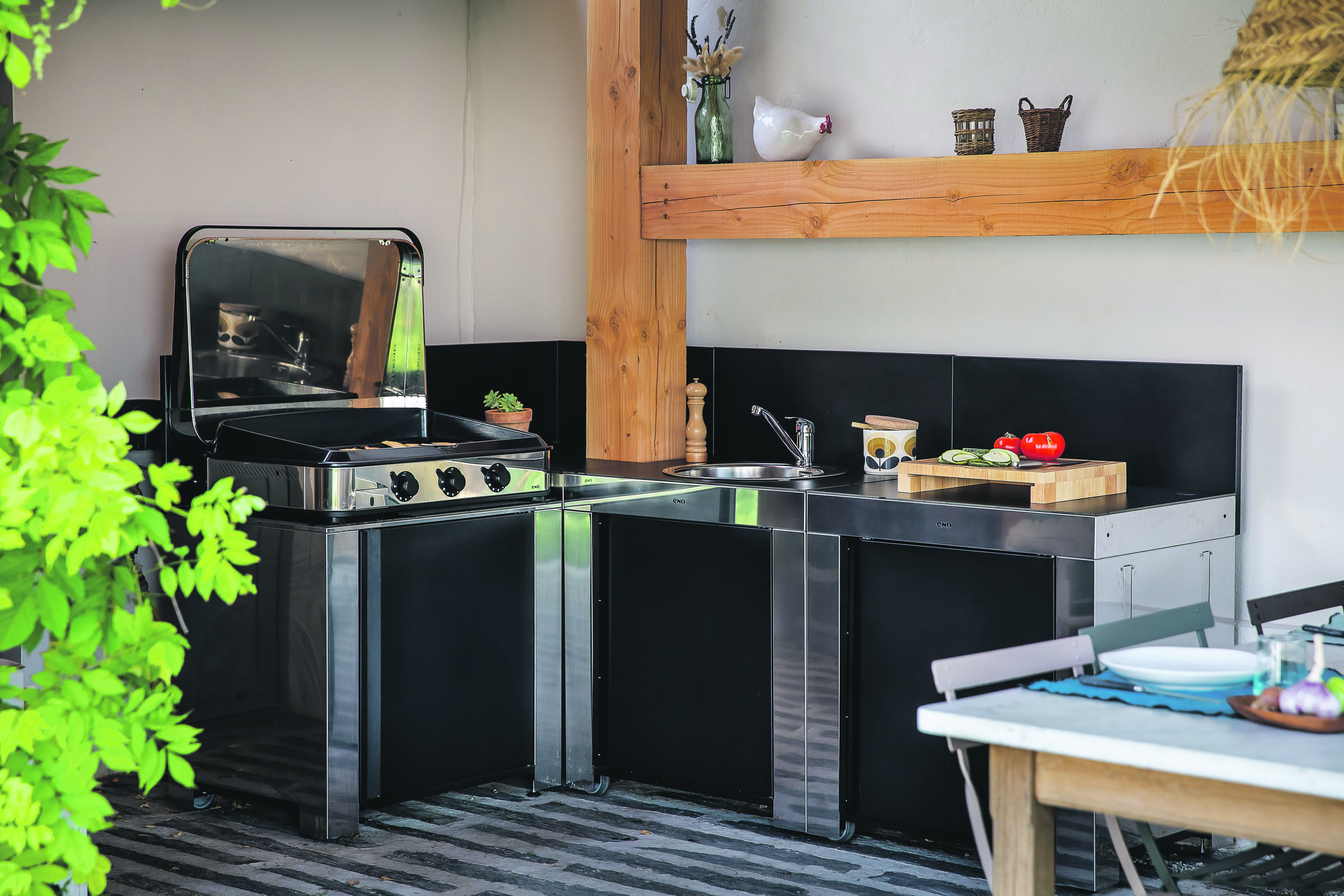 « Tous nos barbecues gaz sont mixtes, c'est notre signature, déclare Lionel Bonnet, PDG de la marque Cook’in Garden parce que nous croyons beaucoup en l'attente de modularité des clients. On est sur des extensions d'usage : cela se traduit par des barbecues multifonctions plancha/grill, pour tout cuire de l'entrée au dessert en passant par des viandes grillées ainsi que par une gamme entière de produits complémentaires comme des dessertes. Véritables meubles d’extérieur, elles permettent de poser une plancha ou des salades/préparations ou encore des accessoires pouvant être aimantés par exemple.» La tendance ira aussi vers l'aménagement de cuisines d'extérieur, avec des modules, proposés à des prix plus accessibles. Eno, spécialiste de la plancha propose ainsi de nombreux modules de planchas en acier ou inox et noir, à des prix démocratisés, qui enregistrent des croissances élevées (+76 % pour les modules mobilier). Vendues en GSB ou en jardineries, ces planchas sont assorties de modules éviers, rangements, plans de travail, qu'il suffit d'assembler pour obtenir une cuisine complète. « C'est le concept du jardin pièce à vivre, explique Antoine Thomas, PDG, nous allons d'ailleurs lancer un module cuisson, comprenant un four et des plaques électriques pour compléter notre gamme... »
