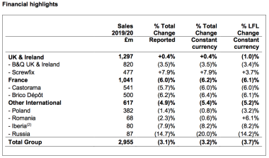 En France les ventes saisonnières de Castorama plongent de 10,2 %. Traduisez que l’automne doux n’a pas poussé aux achats de chauffage. Pas fait pour arranger la sauce de l’enseigne qui sur les autres produits hors saison ou show-room chute de 5,2 %.