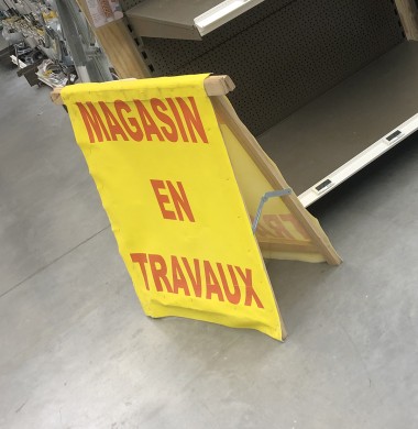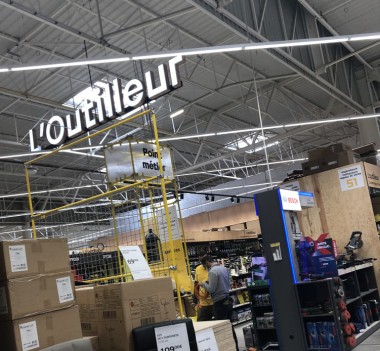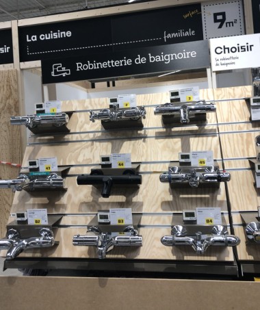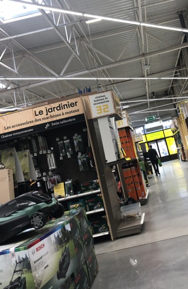 Première révolution, les zones sont déterminées par les métiers : plombier, outilleur, jardinier, menuisier etc... Même si le magasin est en travaux, il est déjà très accueillant, moderne, typé "atelier". Oui, c'est ce sentiment qui domine : entre dans un grand atelier.