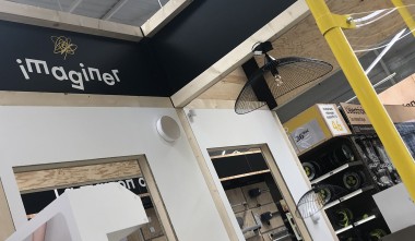Des panneaux "Imaginer" surmontent des zones qui seront sans doute conacrées à des mises en scènes. Amusant le gribouillis au-dessus du nom "Imaginer" Le ton du magasin est à la détente.