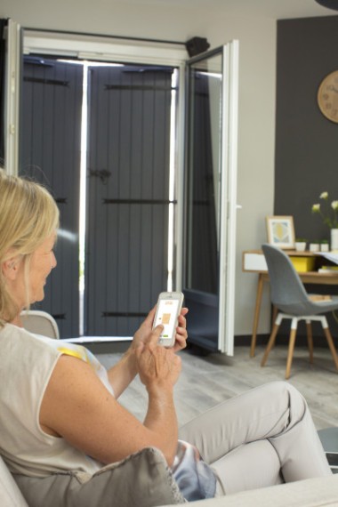 Selon le nombre de vantaux à manipuler, il est possible de concevoir et d’actionner des installations pour des volets battants de 1 à 4 vantaux (de 440 à 2400 mm de largeur). La manipulation est aisée via 3 modes de pilotage (commande murale tactile, télécommande ou smartphone) et le retour d’information en temps réel assure que la commande soit bien réalisée, même à distance. La motorisation VOLETRONIC io d’EHRET offre de nombreux bénéfices en termes de confort. Cette motorisation intègre le protocole radio domotique bidirectionnel io de Somfy, assurant ainsi une compatibilité des volets battants avec la solution domotique Tahoma.