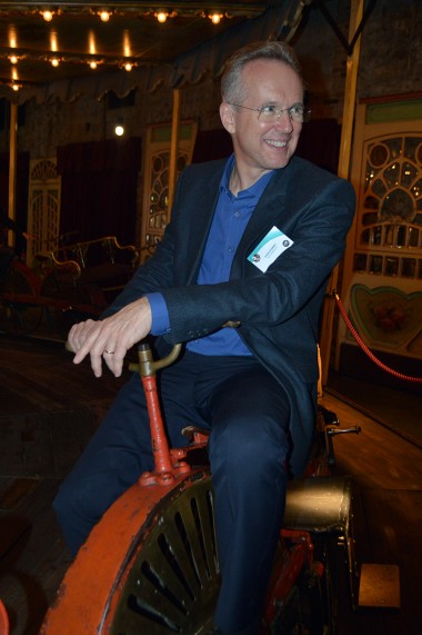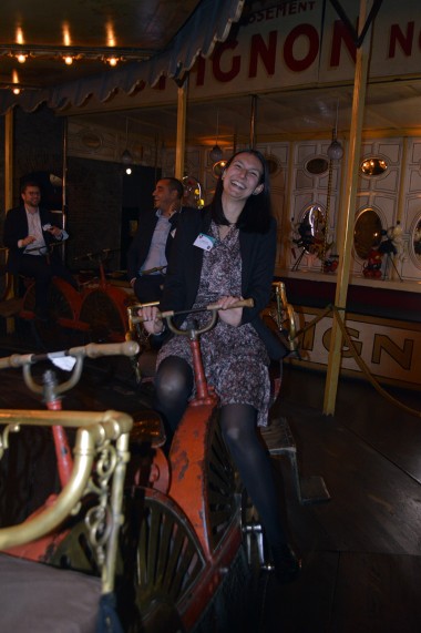 Au centre : L'Outil Parfait pour s'amuser en soirée ? Un vélocipède de manège, n'est-ce pas Laurent Cornet !