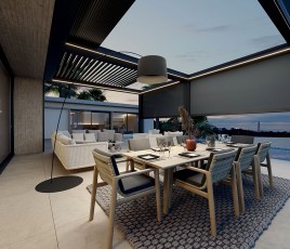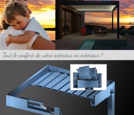 Evolution de la pergola toile, totalement protégée et montage simplifié