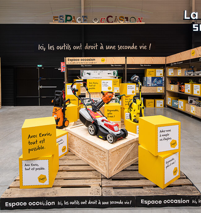 Le moins que l’on puisse dire, c’est qu’il fallait oser vendre des produits d’occasion, dans un magasin de bricolage qui propose deux rayons plus loin, les derniers modèles neufs. Mais visiblement, le concept a pris. Il s’inscrit vers une consommation plus responsable, qui répond clairement aux attentes actuelles du consommateur : « Il est de notre responsabilité d’offrir aux clients des alternatives plus durables et accessibles » déclare Laurent Pussat, Président des enseignes Bricorama, Bricomarché et Brico Cash. Limiter les déchets, ce n’est pas le seul point positif de ce projet. En travaillant avec Envie (Entreprise Nouvelle Vers l’Insertion Économique), l’enseigne affirme sa démarche sociale de réinsertion professionnelle. Une initiative qui a donc fait de Bricorama la lauréate de 2 prix décernés par l’Institut du Commerce.