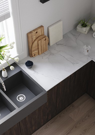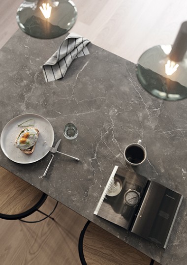 La palette design de cette nouvelle gamme CUISINE associe les arômes avec gourmandise. Au menu : des décors bois, minéraux ou unis, qui rivalisent de bon goût et s’accordent aussi bien à un intérieur contemporain que classique intemporel ; des structures mixant les effets naturels et sophistiqués pour des surfaces sobres ou audacieuses. Ainsi déguste-t-on littéralement des yeux les nouveaux décors Chêne Saïto, dans un esprit japonisant de bois brûlé, Béton Calade et Boston, surprenants d'authenticité, ou encore Marbre Palazio et Venezia à l'aspect délicatement veiné.