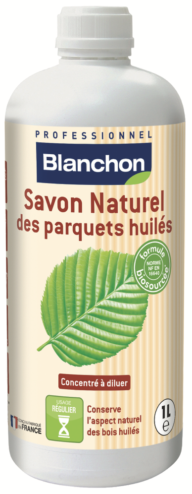 Savon naturel des parquets huilés, aspect Incolore et Blanc. 500 m² / L. Disponible en 1 et 5 L. A partir de 19, 90 €.