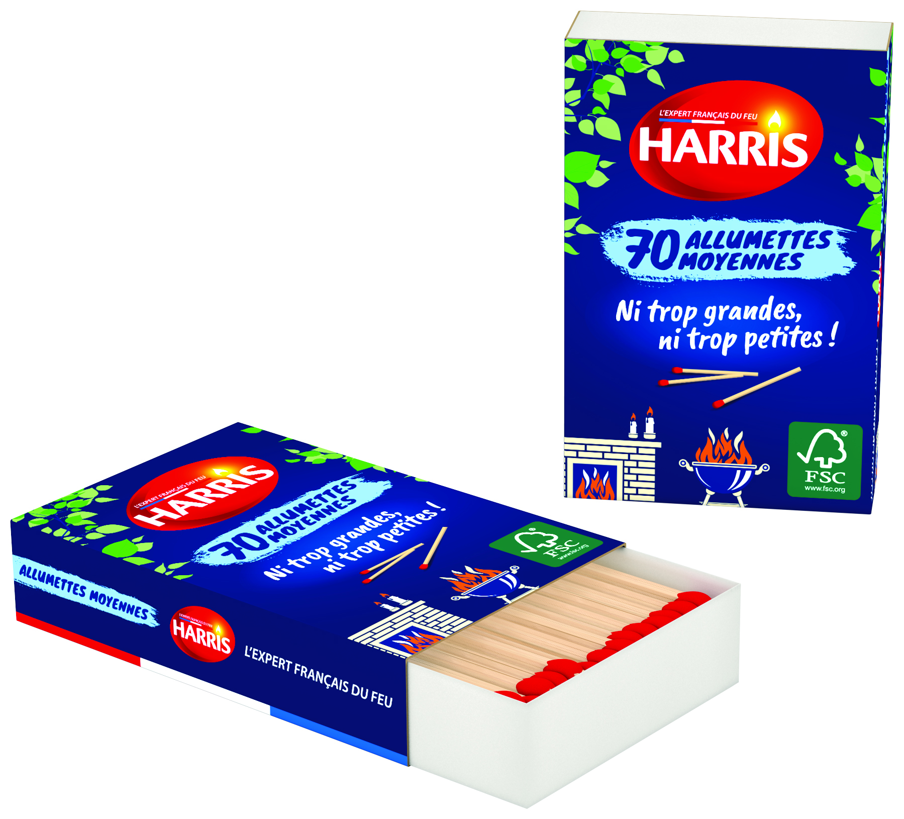 Spécialiste breton des produits pour le feu, Harris décline ses allumettes 20 cm en un format intermédiaire de 10 cm. Une taille revue à la baisse qui permet de limiter le gaspillage : elle est ainsi suffisante pour allumer facilement le barbecue, de grandes bougies extérieures ou des lanternes suspendues... Respectueuses de l’environnement, ces nouvelles allumettes, sans soufre, sont certifiées FSC® (Forest Stewardship Council) et proposées dans un packaging attractif et coloré qui attire l'oeil en rayon.