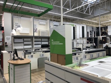 Cette zone est ouverte aux clients qui veulent achever leur projet avec un paysagiste, un architecte, pourquoi pas une banque. Cette zone n’est jamais abandonnée car elle est occupée par le « welcomer » du magasin et par le bureau carte Leroy Merlin.