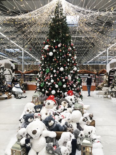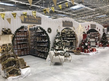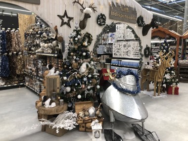 A côté du P’tit Marché une zone est consacrée au saisonnier jardin, actuellement le marché de Noël et les équipes « merch » du groupe se sont « éclatées » à le réaliser, il faut bien le reconnaître. La déco est très chaleureuse, féérique avec moto des neiges, champignon étrange. L’espace est enchanteur et, un instant, on en oublierait presque l’ambiance morose de cette triste période.