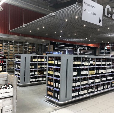 En passant par l'hyper , nous avons découvert l'un des plus beaux rayons de vins vus dans un Leclerc ! Il faut dire qu'on baigne ici en plein Sauternes. Un rayon vin est également disponible dans le P'tit Marché Bio